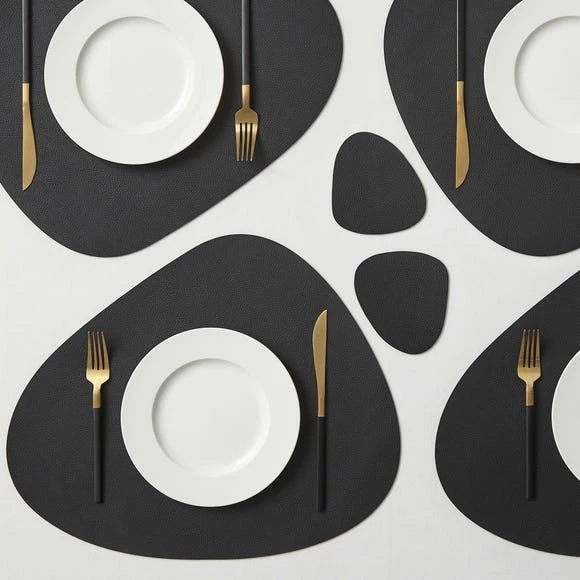 Perfect for keeping your dining table protected whilst adding a stylish touch, these leather placemats are ideal. Crafted from 100% PVC in a stylish black colour, these placemats would compliment any dining table beautifully. These placemats are easy to wipe clean. Other coordinating accessories are also available.