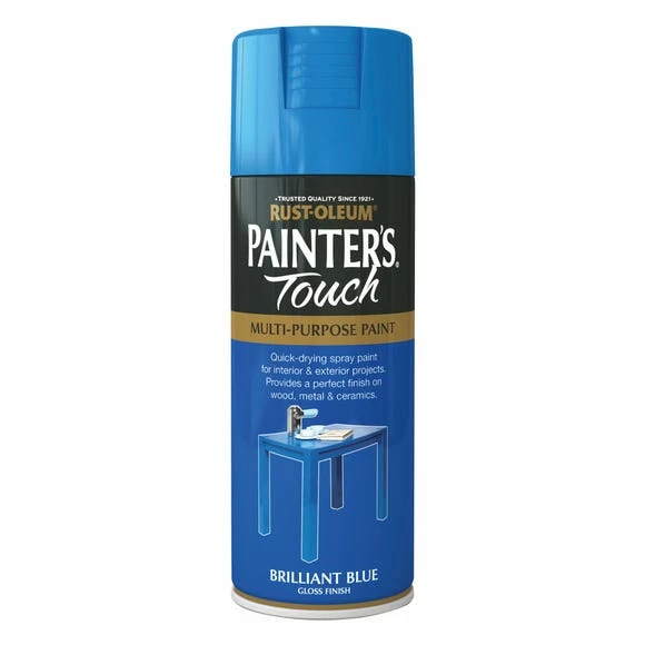 With it’s high quality, fast drying formulation, the Painter’s Touch Spray Paint in bright blue from Rust-Oleum gives a smooth and durable gloss finish to your furniture and is suitable for both interior and exterior use.