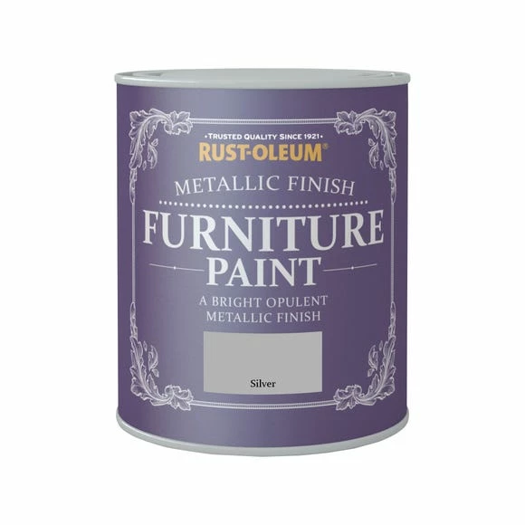 Perfect for home furniture restoration projects, this furniture paint from Rust-Oleum is crafted in classic silver and is ideal for creating a gorgeous metallic finish. No priming or sanding is necessary on most surfaces and exceptional cover is provided with just one coat, perfect for projects you want completed quickly. This paint works well over existing paint or varnish and can be used as a basecoat or a decorative topcoat.