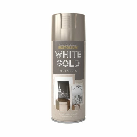 Crafted in a luxurious white gold tone, this premium spray paint from Rust-Oleum is perfect for a wide range of projects and can be used on a variety of surfaces. Providing a scratch-resistant finish, this paint offers excellent coverage and is fast drying for convenience. For interior use only.